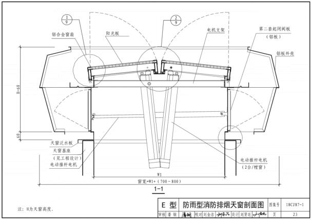 18CJ87-1是一款采光、通风、消防排烟天窗图集,介绍了不同类型的排烟天窗的立面图和剖面图等,添加了通用安装节点构造和电气图,能够快速控制布置。本站提供18CJ87-1图集免费下载,供相关的设计和施工人员参考使用。