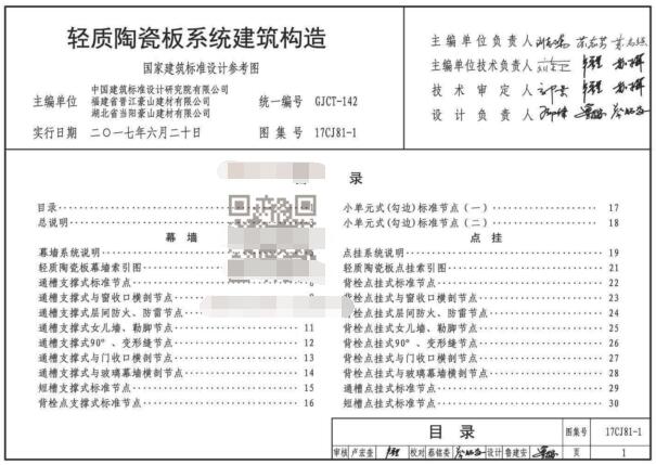 17CJ81-1图集是依据相关规范和技术规程设计的一款轻质的陶瓷板系统建筑构造图集,图集共分为幕墙、点挂、粘贴和粘锚结合四部分,供相关的建筑和设计人员参考。本站提供的是17CJ81-1图集PDF版本,需要可下载。