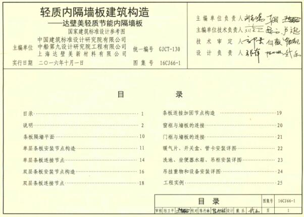 16CJ66-1轻质内隔墙板建筑构造—达壁美轻质节能内隔墙板图集