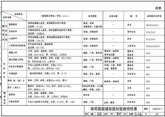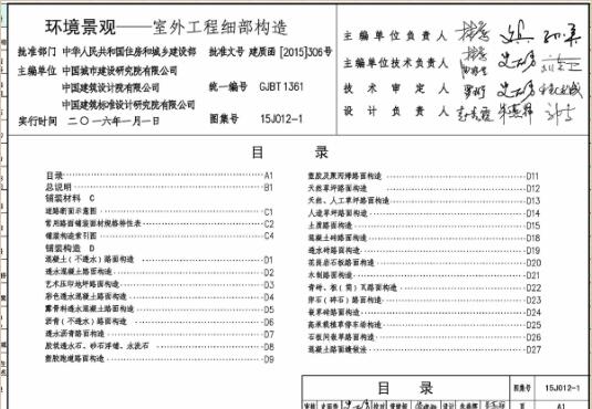 15J012-1图集是03J012-1图集的一个更新版本,内容更加贴近实际需求,同时增加了常用的构造节点及常用材料主要性能表,对铺装材料、铺装构造、缘石、景墙和水景等多种室外工程细部构造做了详细的说明。