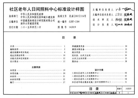 14J819图集是为社区养老院、托老所和从事老年人日间照料服务的建筑设计的一款图集,详细介绍了休息室、淋浴间、餐厅和服务站等场所的设计,还增加了三类设计方案供大家参考。