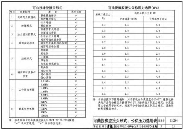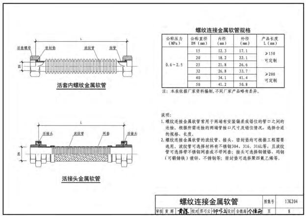13K204暖通空调水管软连接选用与安装图集