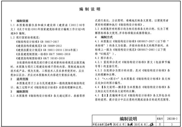 20G108-3图集是根据住房和城乡建设部相关规定编制的一款钢结构设计图集,包括分析方法对比、塑性耗能区、截面板件厚款比等级和梁的构造要求等,适用于工业与民用建筑和一般建筑物的钢结构设计。