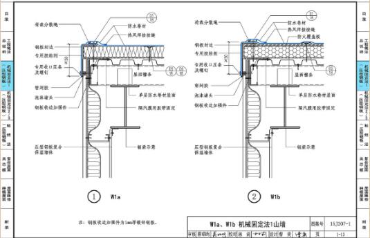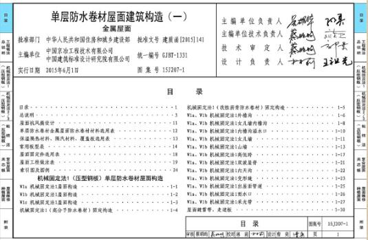 15J207-1图集是基于金属屋面设计的一款单层防水卷材屋面建筑构造图集,介绍了不同单层防水卷材屋面的构造方式,还附上了主要的性能指标,可供施工和设计人员选用参考。