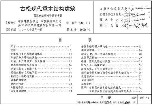 16CJ67-1图集是基于古松现代重木结构建筑设计的一款标准图集,具体介绍了建筑体系、构造、安装等内容,还增加了多种设计示例和工程实例,会更容易理解。本站提供16CJ67-1图集下载,高清免费PDF版本。