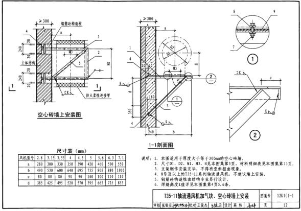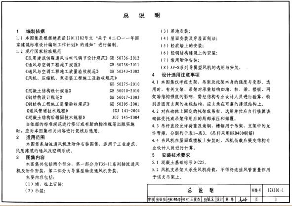 12K101-1图集是一款免费的轴流通风机安装图集,分为T35-11系列轴流通风机及附件安装和导翼型轴流通风机安装两部分,包括轴流通风机的安装、材料明细表和详图等,内容详尽,条理清晰,适用于设计人员的选用和施工安装等。
