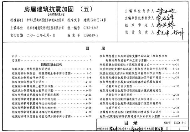 13SG619-5图集是一款标准的房屋建筑抗震加固设计图集,该图集是针对公共建筑的抗震加固设计的,分为钢筋混凝土结构、钢结构屋盖、基础和示例四大部分,就设计中的重要内容做了详细的阐述,提供给相关人员参考。