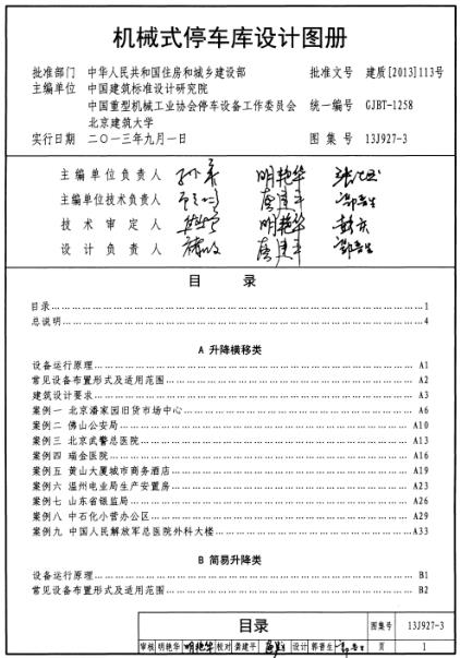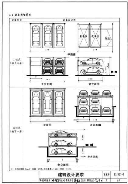 13J927-3图集是一款标准的机械式停车库设计图集,介绍了升降横移类、简易升降类、垂直升降类和巷道堆垛类等几种常见停车场的设计,每款都有详细的案例说明,这样我们在设计的时候就有参考标的了。