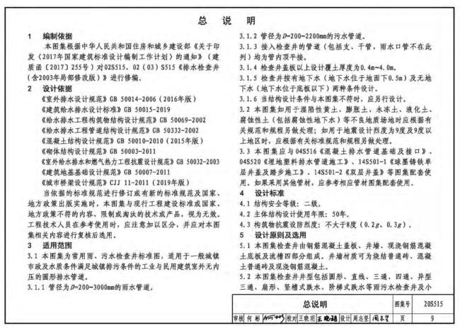 本图集对原图集02S515、02(03)S515进行修编,按新标准规范和目前技术发展重新进行设计,增大了接入检查井的管径上限,雨水管道由2000mm增大到3000mm,污水管由1500mm增大到2200mm,更好地满足室外雨、污水管道工程的需要。