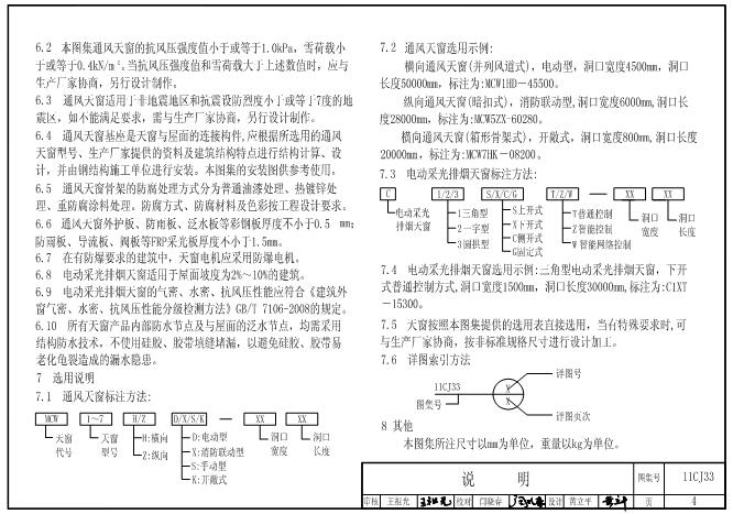 11CJ33图集是一款标准的通风采光天窗图集,介绍了7种不同形式的通风天窗,包括选用表、选用示意图、安装图和原理图等,设计编排合理,讲解详细,适用于通风采光天窗的设计、安装和改进等。