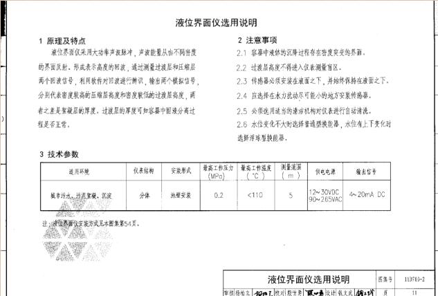 11D703-2图集是99D703-2图集的一个修订版,详细介绍了液位测量装置的安装图,包括电容式液位计、静压式液位计和超声波液位计等多种液位计,内容详细,对液位计的安装和选用提供了参考信息。