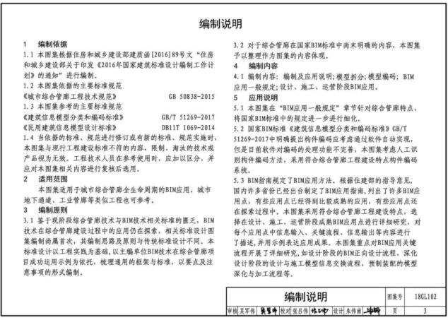 18GL102图集是综合管廊工程BIM应用图集,完全按照相关设计标准设计,发呢为模型拆分、模型编码、BIM应用一般规定、BIM应用等内容,适合城市综合管廊全生命周期的BIM应用、城市地下通道和工业管廊等类似的工程。