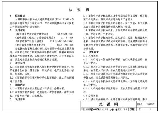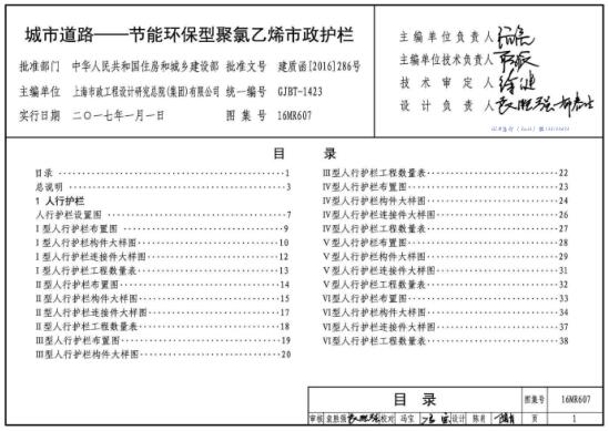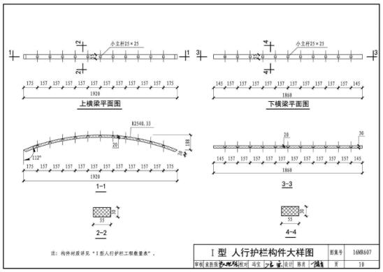 16MR607图集是一款城市道路市政护栏建造设计图集,包括常见的人行护栏和分割护栏的布置图、大样图、数量表等,还附录了人行护栏结构设计算例,图集高清无水印,并且是PDF格式,可直接在线预览或者打印。