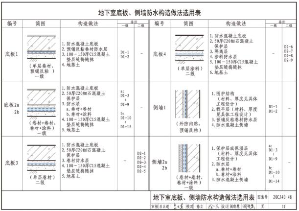 地下室底板、侧墙防水构造做法选用表11