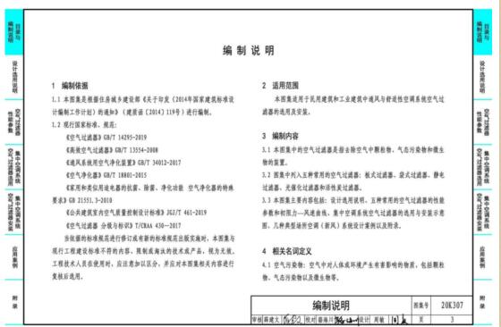 20K307图集是一款标准的空气过滤器选用与安装图集,包括空气过滤器性能参数、集中空调系统空气过滤器选用、集中空调系统空气过滤器安装等内容,适用于民用建筑和工业建筑中通风与舒适性空调系统。