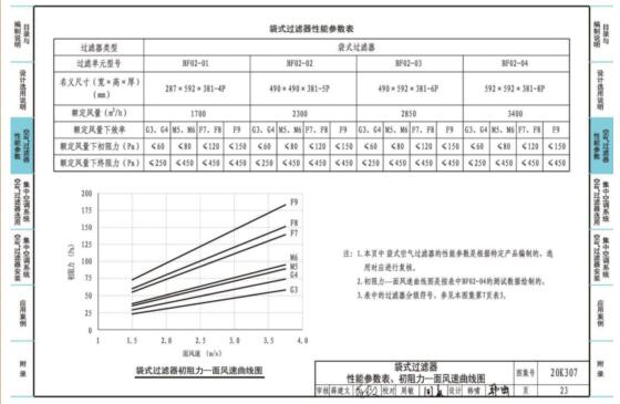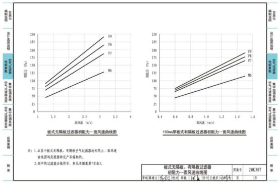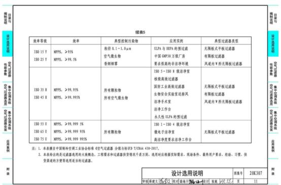 3.本图集主要内容包括:设计选用说明,五种常用的空气过滤器的性能参数和初阻力-风速曲线、集中空调系统空气过滤器的选用与安装示意图、几种典型场所空调(新风)系统设计案例以及附录