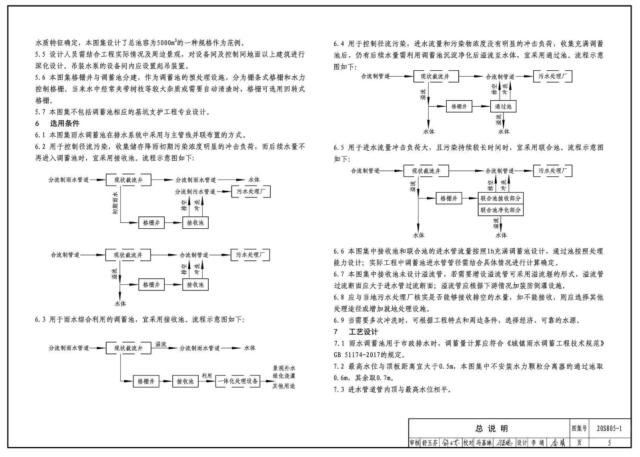 3、本图集调蓄池按封闭结构池型设计机械排风,由于进水水质及使用场合等不确定因素,故本图集未设计除臭系统。在合流制排水系统中用于雨水径流污染控制的调蓄池、分流制排水系统中位于居民区或重要地段的调蓄池,应根据规范在其通风竖井或排风口增设臭气收集和除臭设施。