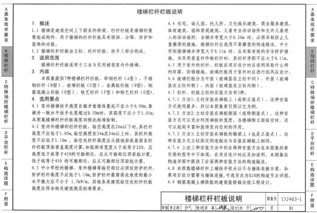 1.本图集共分6个部分:基本技术要求、楼梯栏杆栏板、特殊场所楼梯栏杆、平台栏杆栏板、构造详图和附录。