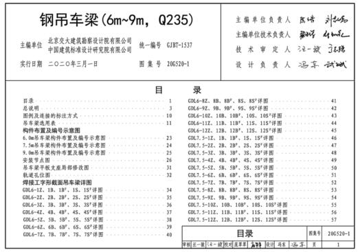 G520-1~2图集是20G520-1图集和20G520-2图集的一个结合版本,该图集结合近年来的反馈意见做了修改,包括构建布置及编号示意图、焊接工字形截面吊车梁详图、走道板详图等内容,适合一般用途的吊车。