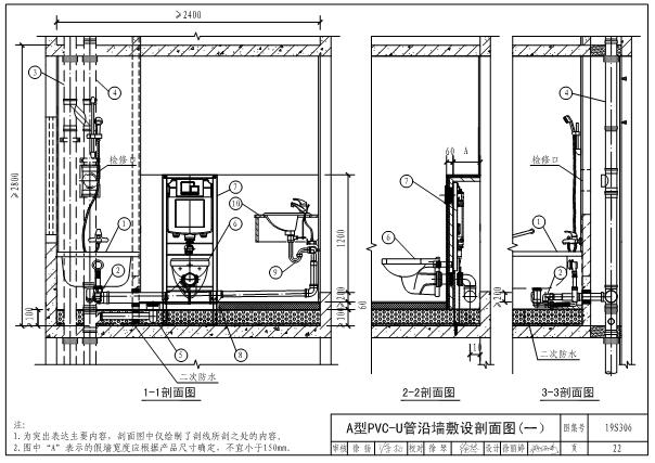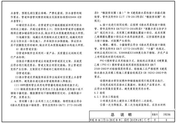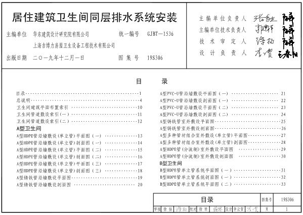 19S306图集是为居住建筑卫生间排水系统安装设计的一款标准图集,图集介绍了A型、B型、C型、D型、E型和F型卫生间设计的平面图和剖面图,还详细介绍了水箱、地漏、配件和管道的安装示意图,可以说内容是非常全面的,在设计卫生间的时候可以参考下。